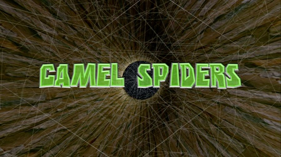 The opening credits of “Camel Spiders” grow from the center of this webbed tunnel. It’s unclear what the tunnel has to do with anything in the film.