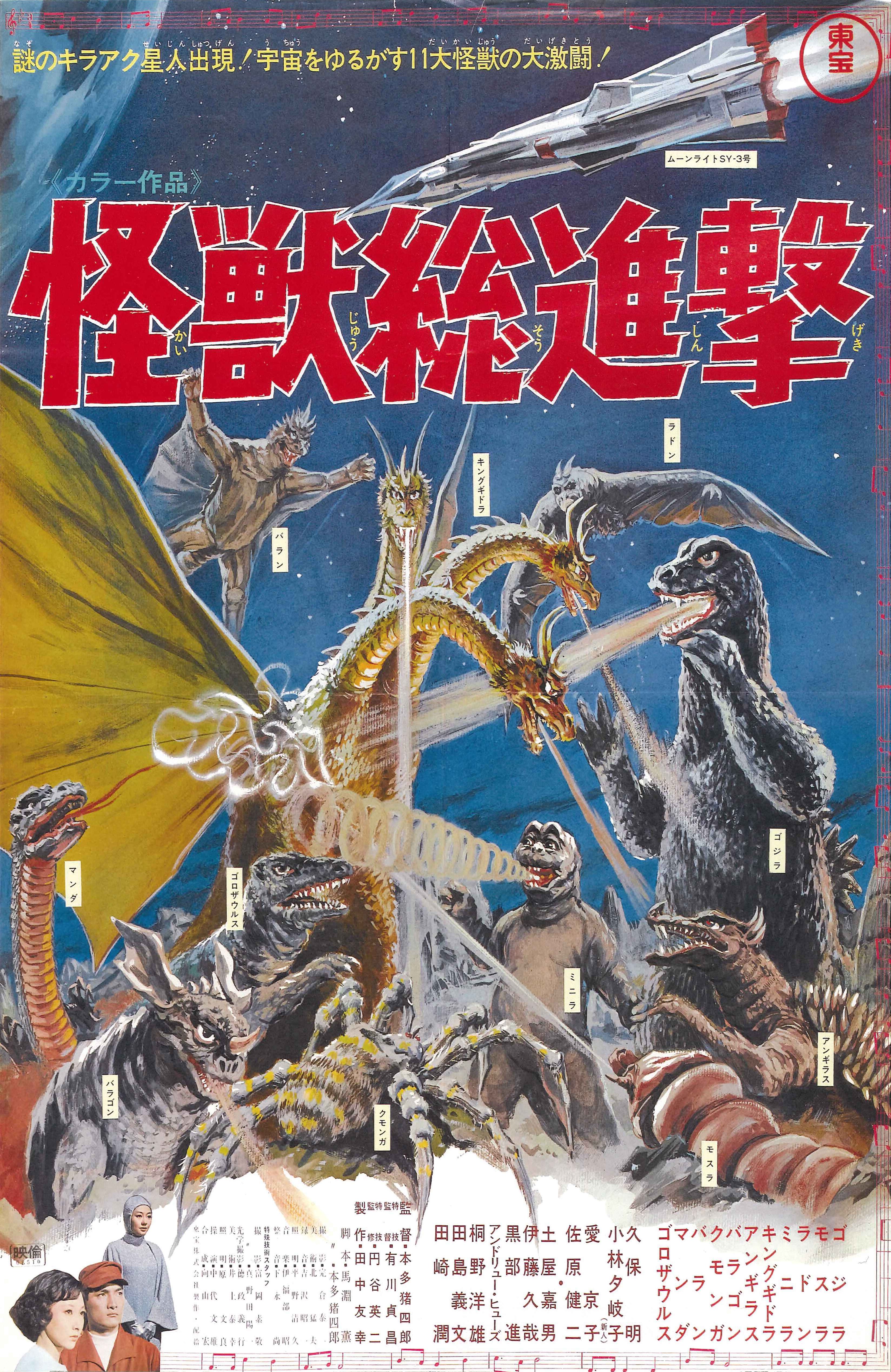 Japanese mini promo poster for “Charge of the Monsters”, aka “Destroy All Monsters”.