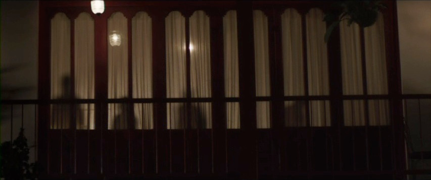 Ghosts appear in the upstairs windows.