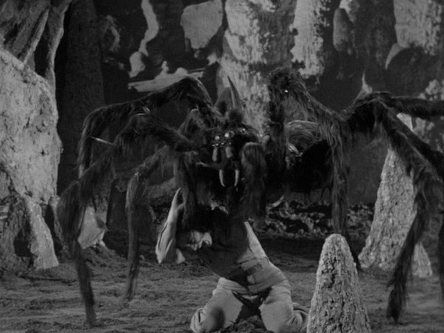 What delights me most about the Moon spiders is how irrelevant they are. They drop in during the first trip through the caves and are never seen again. Nobody is injured by them, and the bullets used to slay them don’t create a shortage of ammunition. The damn things don’t even come back for the climax, which takes place largely off-screen in the cave. To all appearances the spider footage was added just so something onscreen would actually make use of the 3D print. That and spiders look great on promotional material.