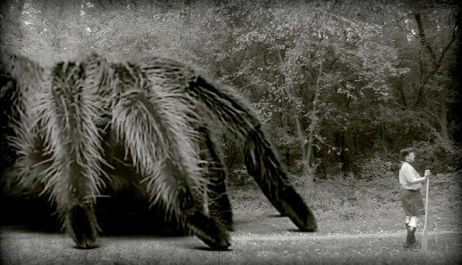 Homage movies can be a challenge to review. More than most movies they are meant to be seen in the context of a particular genre and/or period of filmmaking, depending on the audience having at least passing familiarity with the sources. It’s similar to the spoof, which relies on audience expectations built from one or more previous movies. They can be hard to distinguish at times — much of the humor of The Lost Skeleton of Cadavracomes from deliberately crafted flaws, typical of the movies it emulates — but in general the homage seeks to tell a story more than to poke fun. Such a film is The Giant Spider